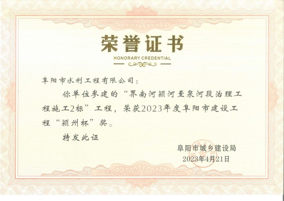 2023年度阜陽市建設工程“潁州杯”獎