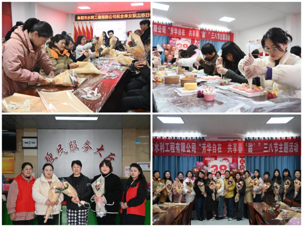 春暖三月,芳華競現。為充分展現新時代巾幗風采,豐富職工精神文化生活,3月8日上午,市水利工程有限公司工會以“芳華自在 共享春‘甜’”為主題,開展了豐富多彩的節日慶祝活動,旨在增加彼此的交流,進一步增強創造力、凝聚力。